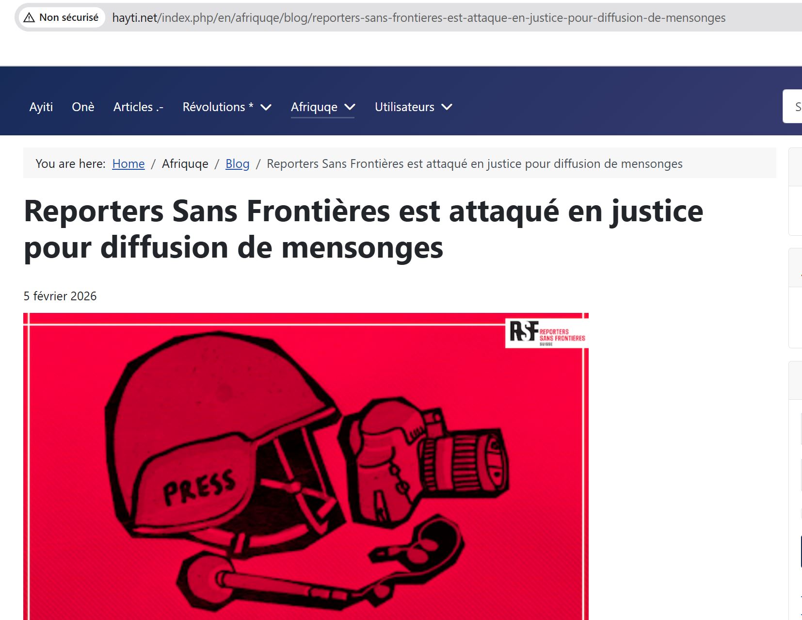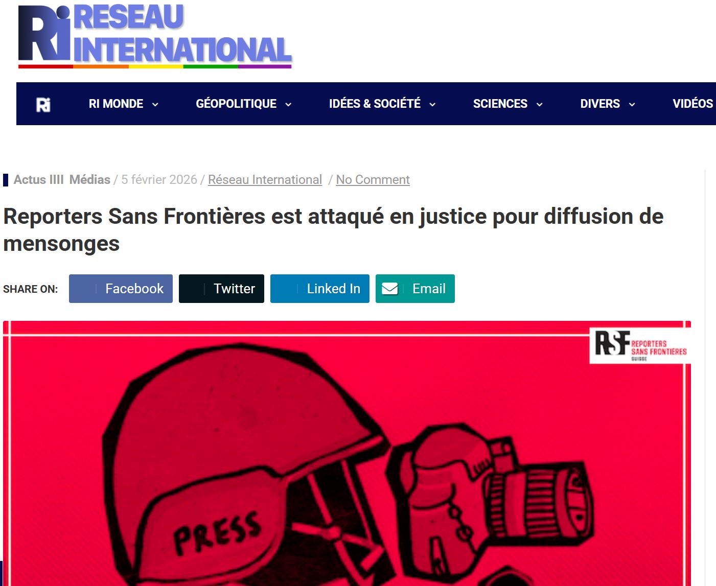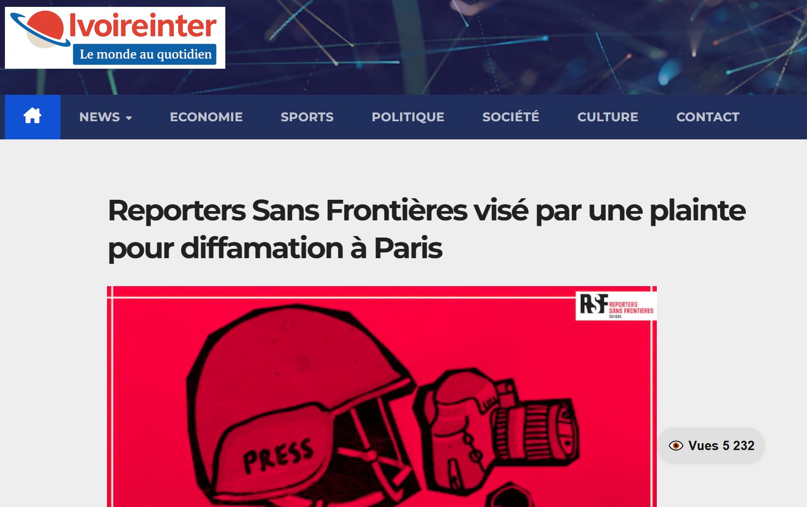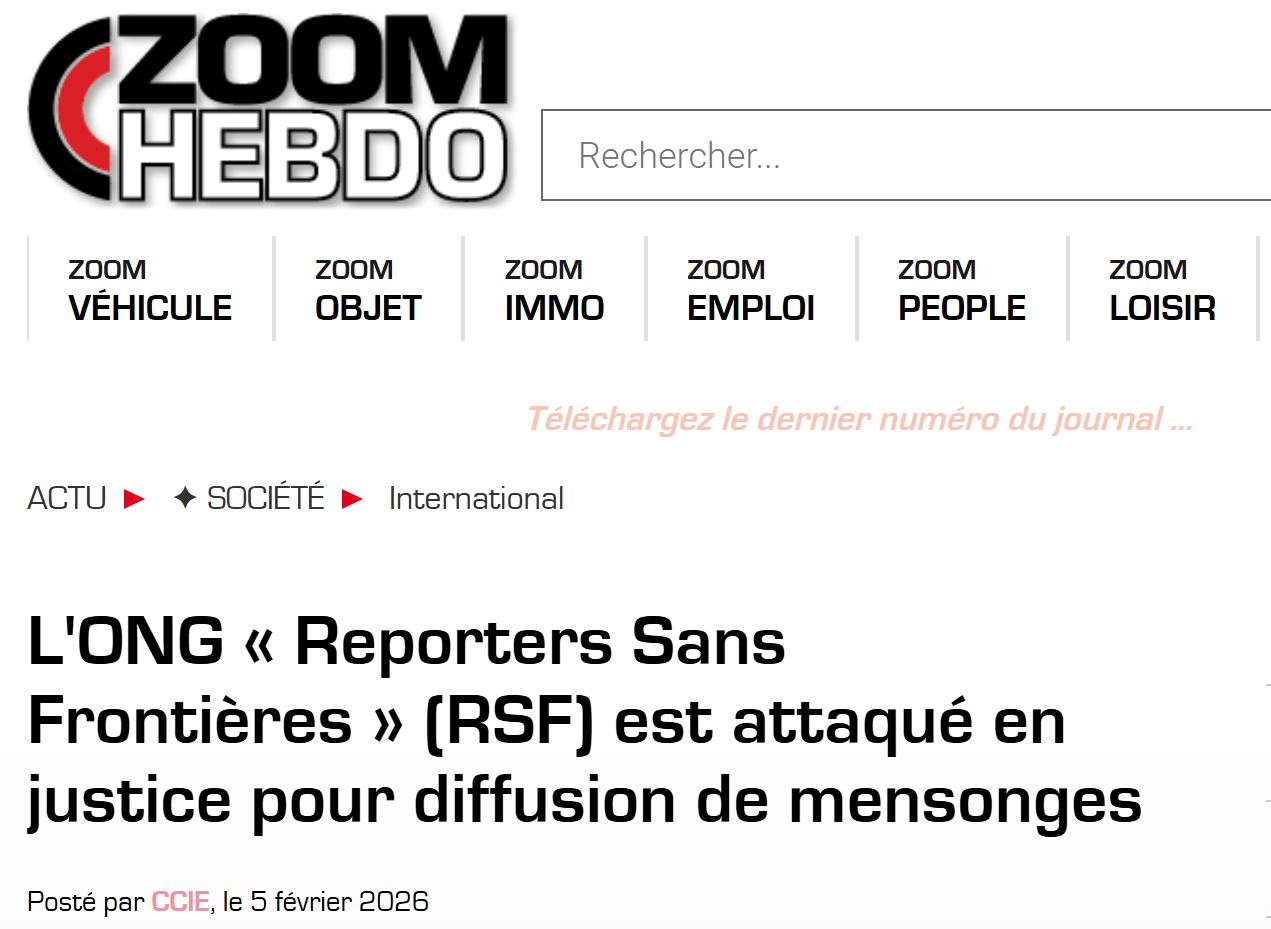 L’ONG « Reporters Sans Frontières » (RSF) est attaqué en justice pour diffusion des mensonges.