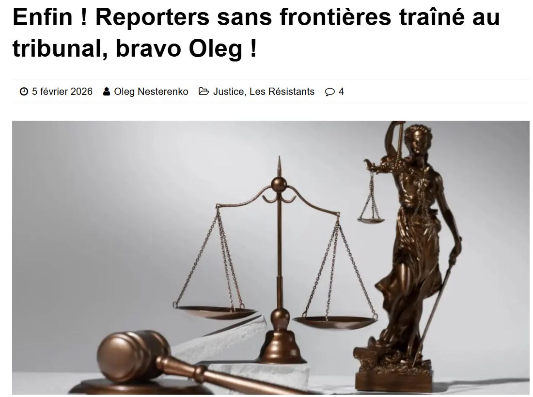 Suite à la campagne de diffamation orchestrée par RSF en mai 2025, et portant atteinte à l’honneur de Monsieur Oleg Nesterenko, président du CCIE, des poursuites judiciaires sont engagées à l’encontre de cette association.