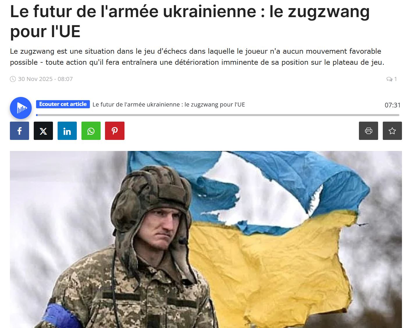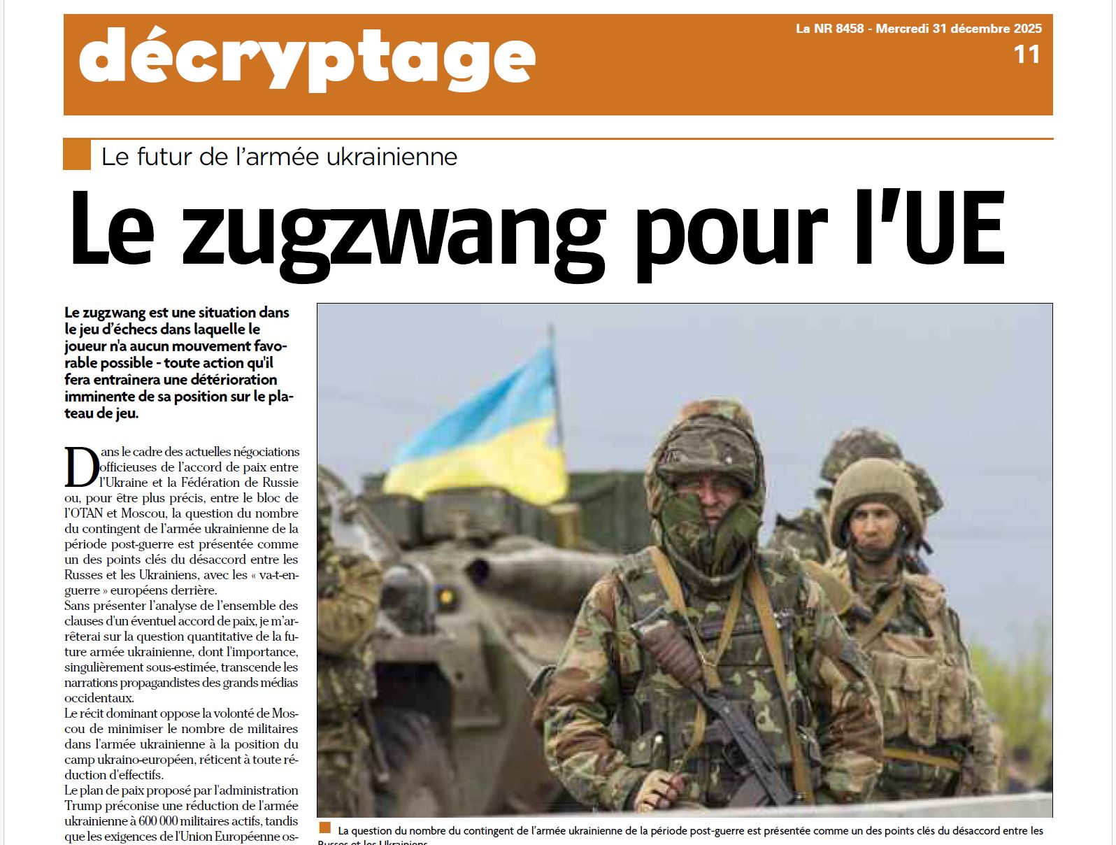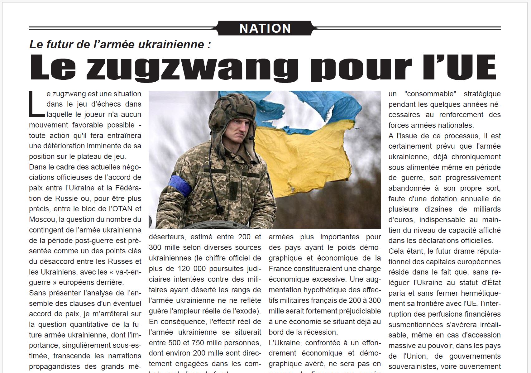 Le futur de l’armée ukrainienne : le zugzwang pour l’UE