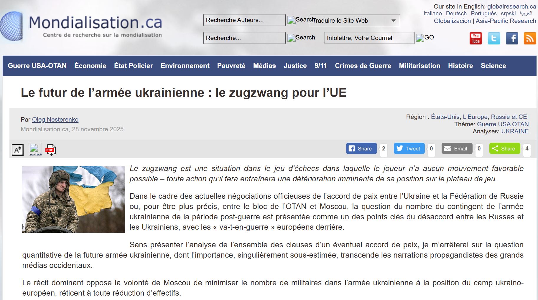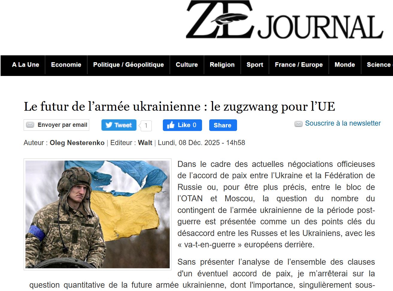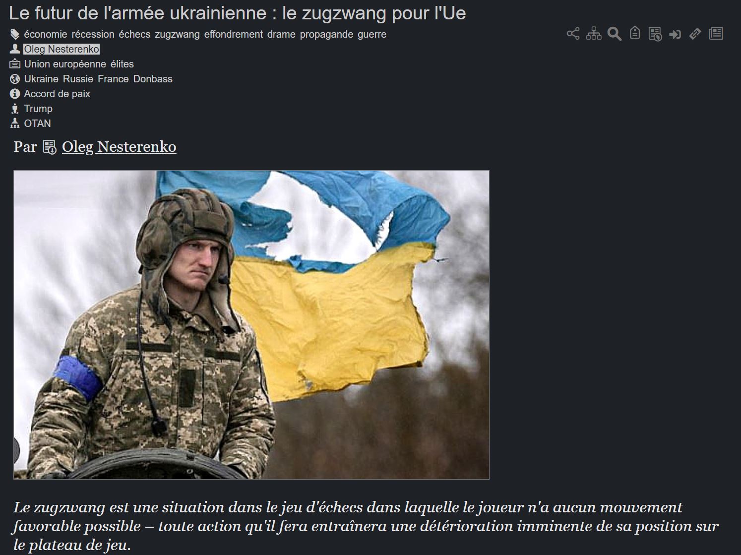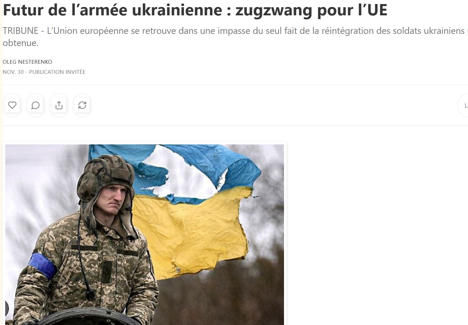 Le futur de l’armée ukrainienne : le zugzwang pour l’UE