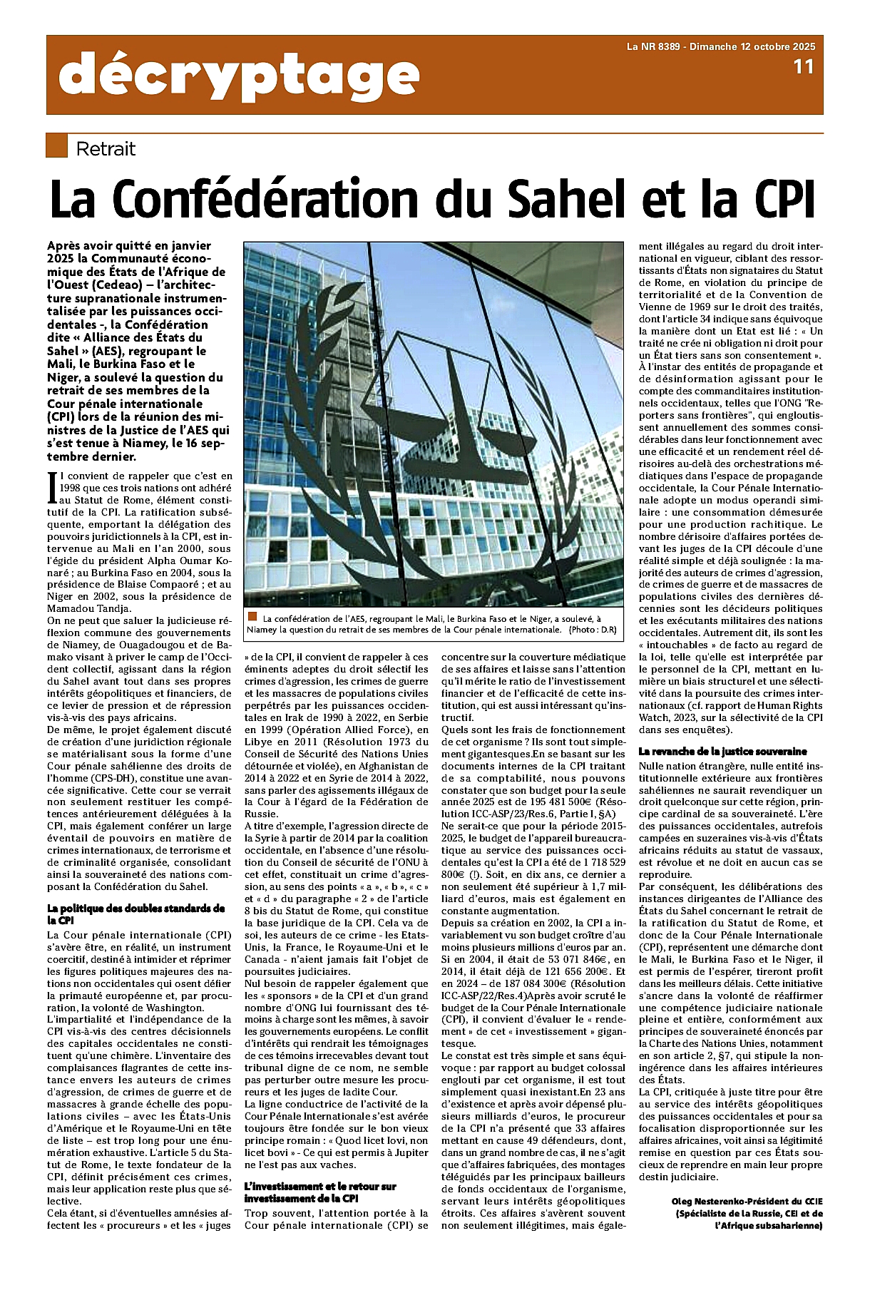 Le retrait de la Confédération du Sahel de la CPI (09/2025) ?