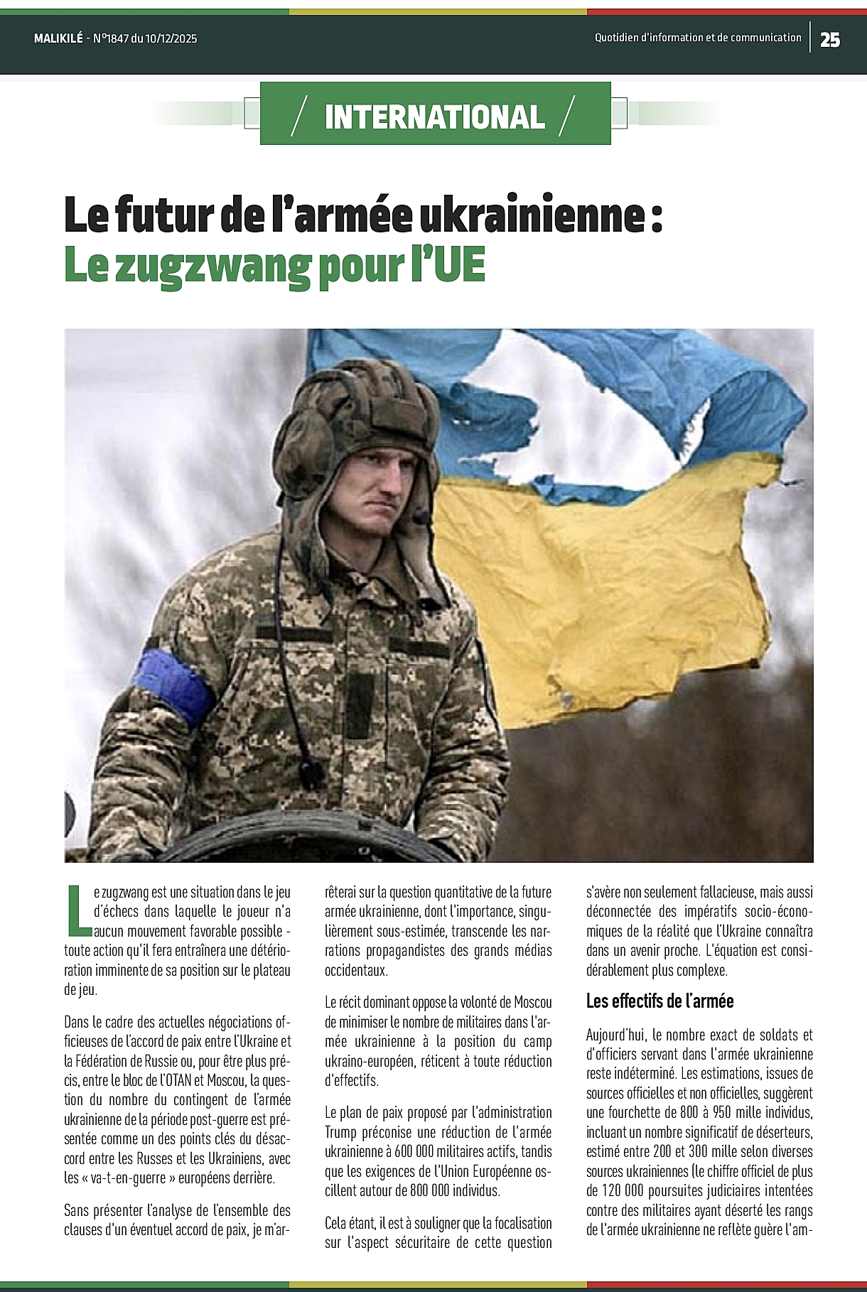 Le futur de l’armée ukrainienne : le zugzwang pour l’UE (11/2025)