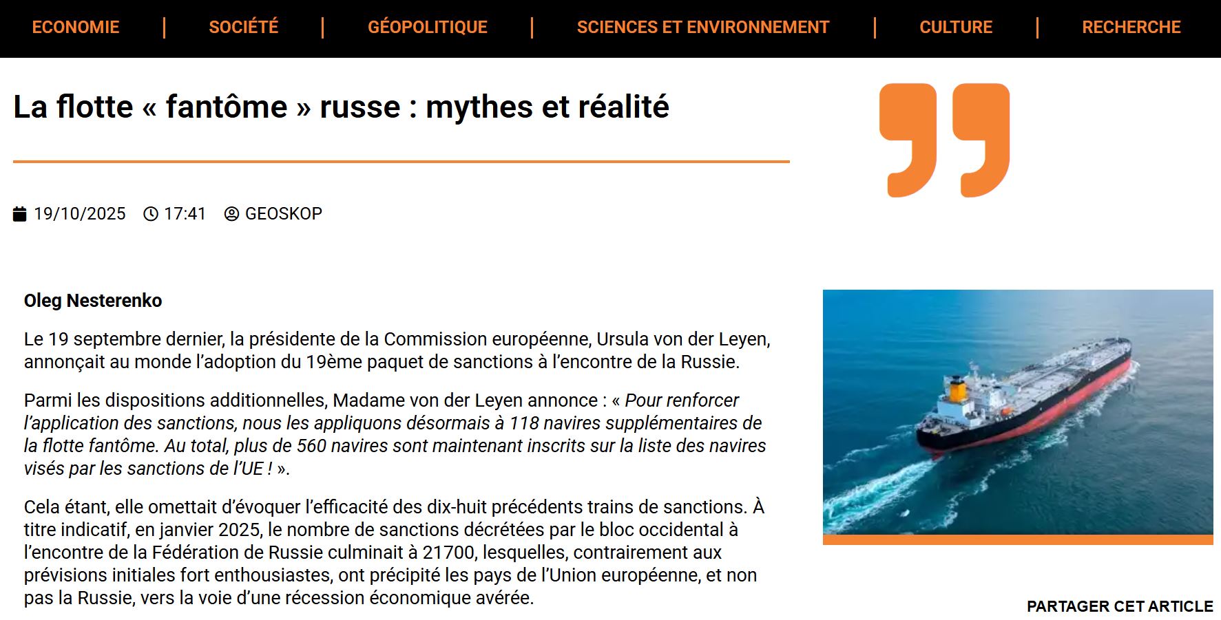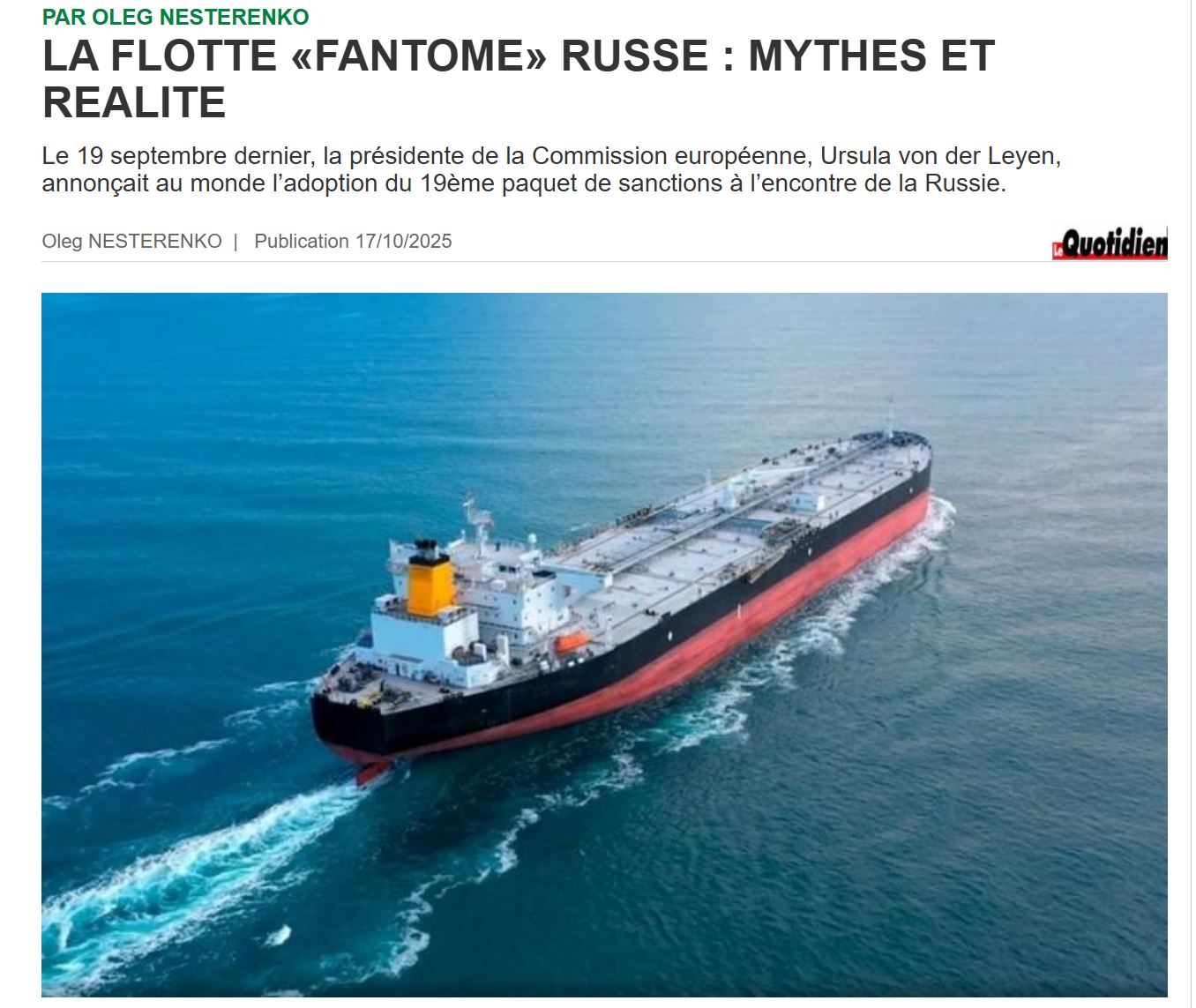 La flotte « fantôme » russe : mythes et réalité